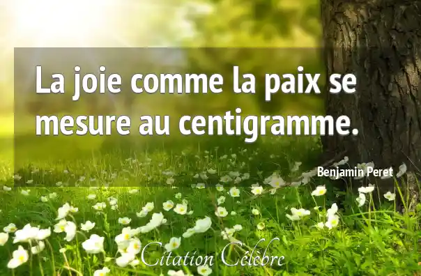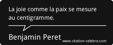 La joie comme la paix se mesure au centigramme.
