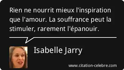 Rien ne nourrit mieux l'inspiration que l'amour. La souffrance peut la stimuler, rarement l'épanouir.