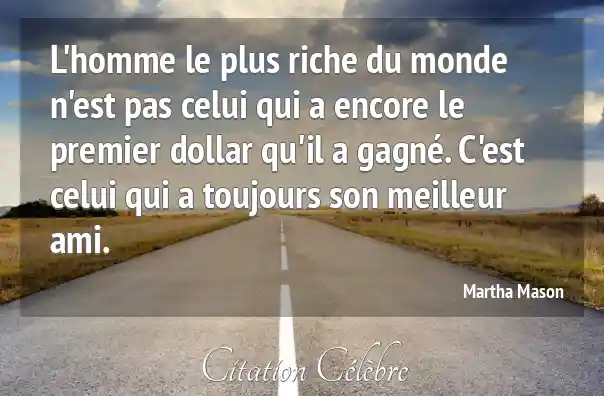 L'homme le plus riche du monde n'est pas celui qui a encore le premier dollar qu'il a gagné. C'est celui qui a toujours son meilleur ami.