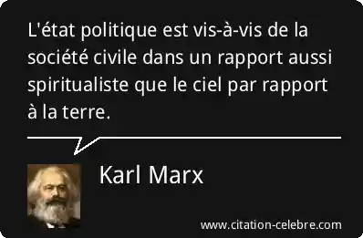 L'état politique est vis-à-vis de la société civile dans un rapport aussi spiritualiste que le ciel par rapport à la terre.