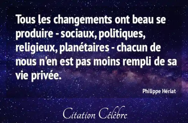 Tous les changements ont beau se produire - sociaux, politiques, religieux, planétaires - chacun de nous n'en est pas moins rempli de sa vie privée.