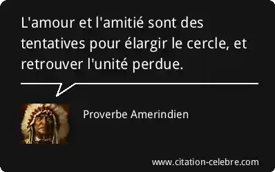 Proverbe  Amerindien Amour : L'amour et l'amitié sont des tentatives pour élargir le cercle,...