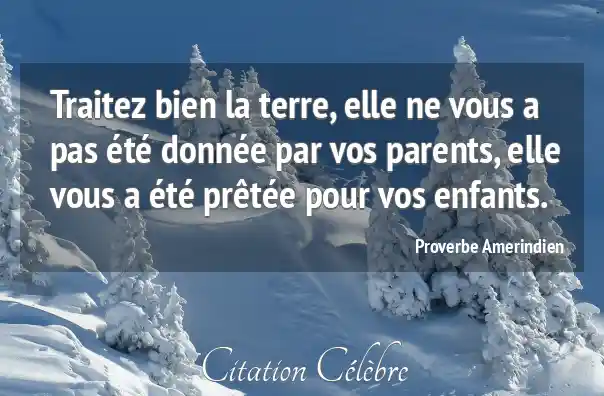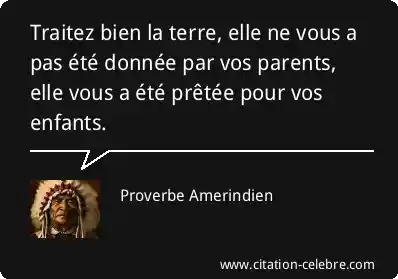 Traitez bien la terre, elle ne vous a pas été donnée par vos parents, elle vous a été prêtée pour vos enfants.