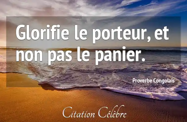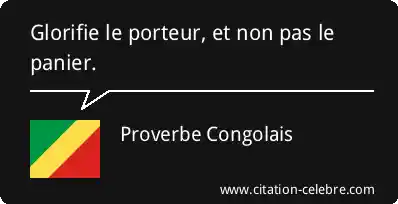 Proverbe  Congolais Non : Glorifie le porteur, et non pas le panier....