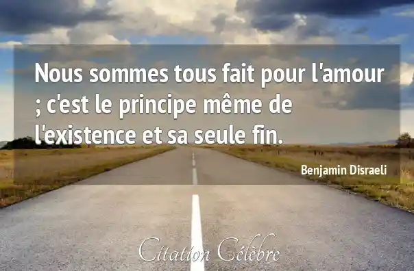 Citation Benjamin Disraeli amour : Nous sommes tous fait pour l'amour ; c'est le principe...