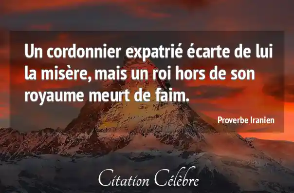 Un cordonnier expatrié écarte de lui la misère, mais un roi hors de son royaume meurt de faim.