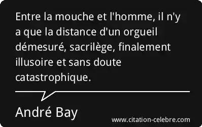 Entre la mouche et l'homme, il n'y a que la distance d'un orgueil démesuré, sacrilège, finalement illusoire et sans doute catastrophique.