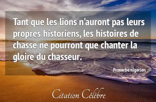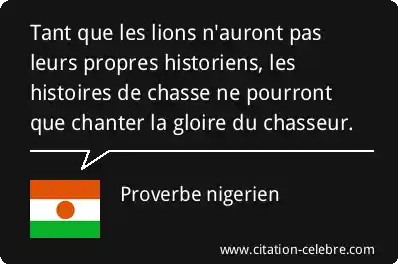 Tant que les lions n'auront pas leurs propres historiens, les histoires de chasse ne pourront que chanter la gloire du chasseur.
