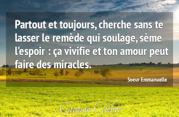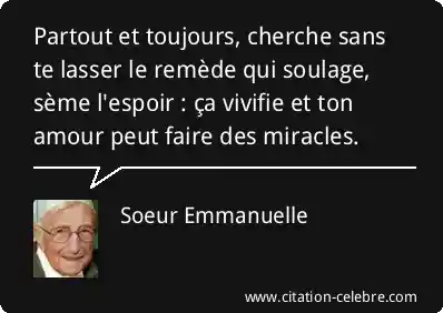 Partout et toujours, cherche sans te lasser le remède qui soulage, sème l'espoir : ça vivifie et ton amour peut faire des miracles.