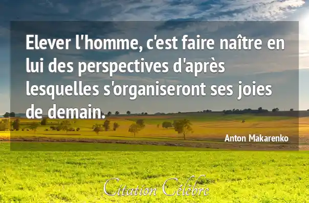 Elever l'homme, c'est faire naître en lui des perspectives d'après lesquelles s'organiseront ses joies de demain.