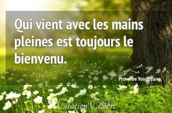 Qui vient avec les mains pleines est toujours le bienvenu.
