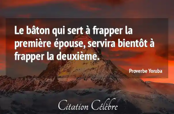 Le bâton qui sert à frapper la première épouse, servira bientôt à frapper la deuxième.