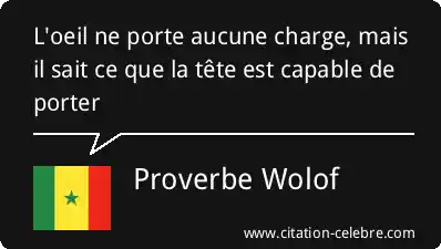 Proverbe  Wolof Oeil : L'oeil ne porte aucune charge, mais il sait ce que...