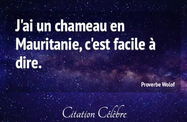 J'ai un chameau en Mauritanie, c'est facile à dire.