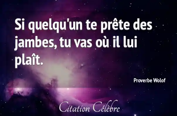 Si quelqu'un te prête des jambes, tu vas où il lui plaît.