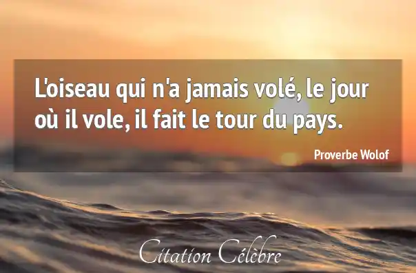 L'oiseau qui n'a jamais volé, le jour où il vole, il fait le tour du pays.
