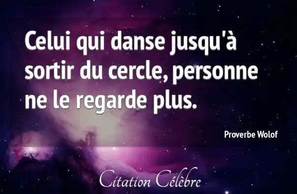 Celui qui danse jusqu'à sortir du cercle, personne ne le regarde plus.