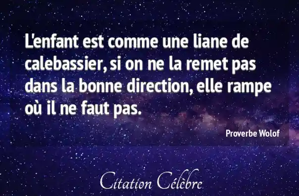 L'enfant est comme une liane de calebassier, si on ne la remet pas dans la bonne direction, elle rampe où il ne faut pas.