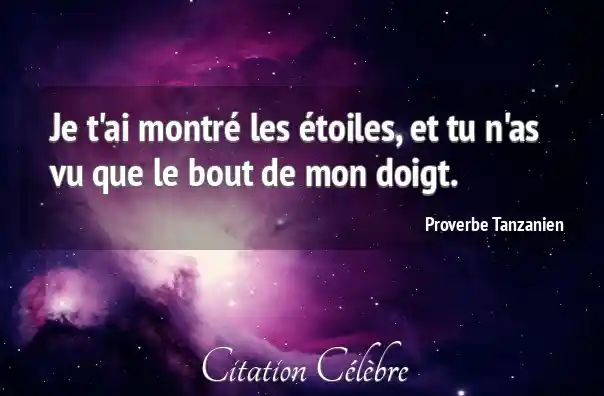 Je t'ai montré les étoiles, et tu n'as vu que le bout de mon doigt.