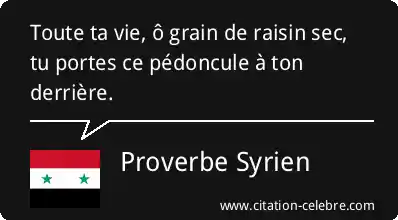 Toute ta vie, ô grain de raisin sec, tu portes ce pédoncule à ton derrière.