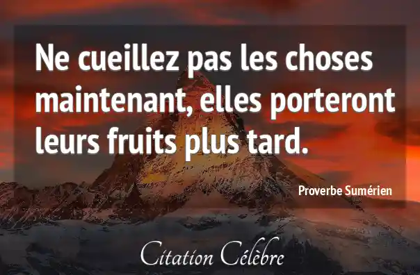 Ne cueillez pas les choses maintenant, elles porteront leurs fruits plus tard.