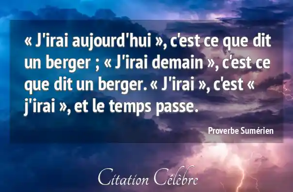 « J'irai aujourd'hui », c'est ce que dit un berger ; « J'irai demain », c'est ce que dit un berger. « J'irai », c'est « j'irai », et le temps passe.