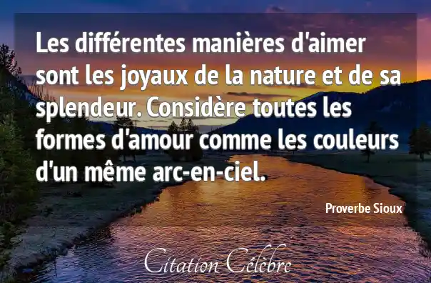 Les différentes manières d'aimer sont les joyaux de la nature et de sa splendeur. Considère toutes les formes d'amour comme les couleurs d'un même arc-en-ciel.