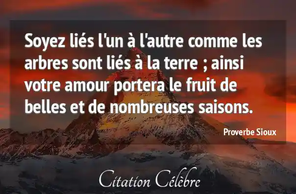 Soyez liés l'un à l'autre comme les arbres sont liés à la terre ; ainsi votre amour portera le fruit de belles et de nombreuses saisons.