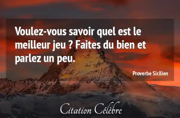 Voulez-vous savoir quel est le meilleur jeu ? Faites du bien et parlez un peu.
