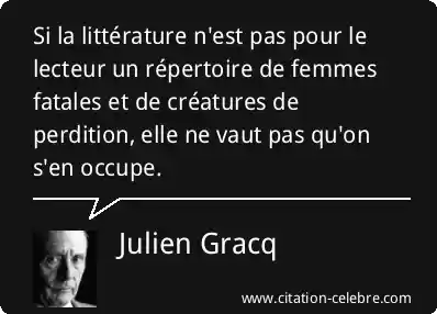 Si la littérature n'est pas pour le lecteur un répertoire de femmes fatales et de créatures de perdition, elle ne vaut pas qu'on s'en occupe.