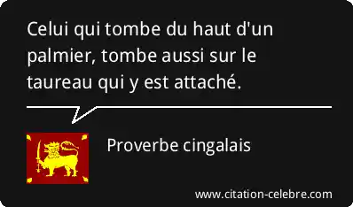 Celui qui tombe du haut d'un palmier, tombe aussi sur le taureau qui y est attaché.