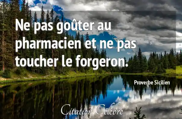 Ne pas goûter au pharmacien et ne pas toucher le forgeron.