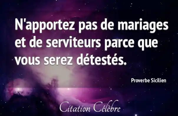 N'apportez pas de mariages et de serviteurs parce que vous serez détestés.