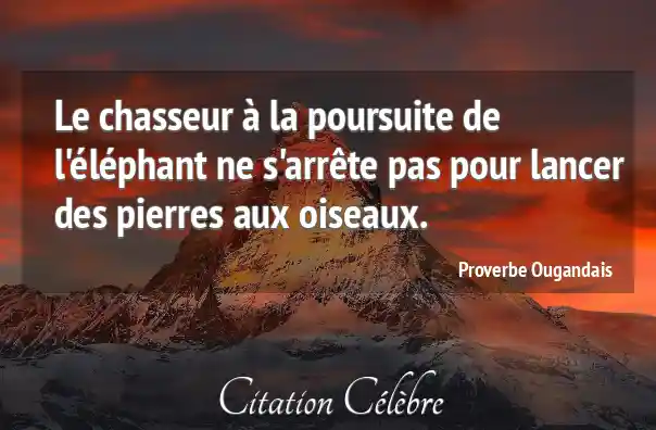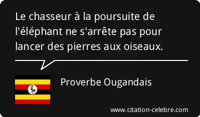 Le chasseur à la poursuite de l'éléphant ne s'arrête pas pour lancer des pierres aux oiseaux.