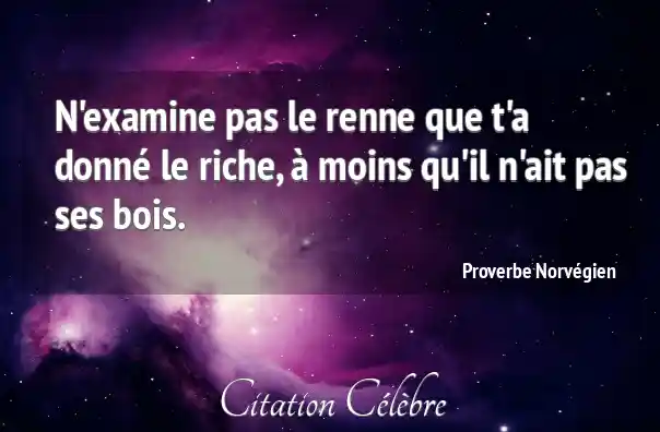 N'examine pas le renne que t'a donné le riche, à moins qu'il n'ait pas ses bois.