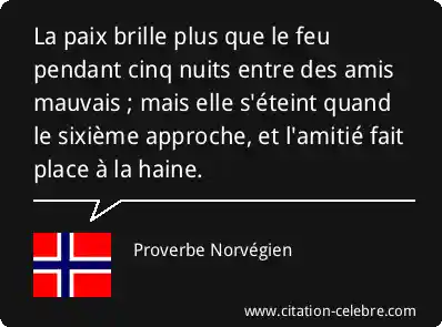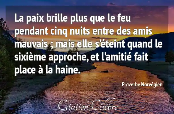 La paix brille plus que le feu pendant cinq nuits entre des amis mauvais ; mais elle s'éteint quand le sixième approche, et l'amitié fait place à la haine.