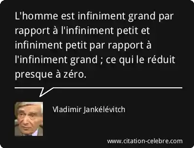 L'homme est infiniment grand par rapport à l'infiniment petit et infiniment petit par rapport à l'infiniment grand ; ce qui le réduit presque à zéro.
