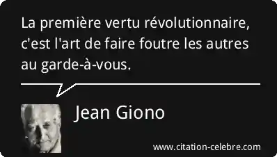 Citation Jean Giono art : La première vertu révolutionnaire, c'est l'art de faire foutre les...