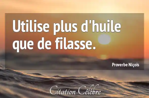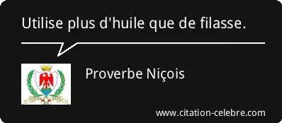 Proverbe  Niçois Huile : Utilise plus d'huile que de filasse....