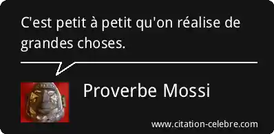 Proverbe  Mossi Choses : C'est petit à petit qu'on réalise de grandes choses....