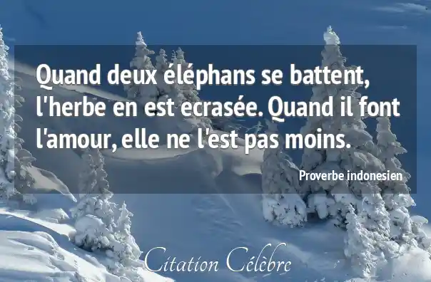 Quand deux éléphans se battent, l'herbe en est ecrasée. Quand il font l'amour, elle ne l'est pas moins.