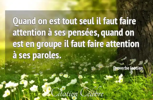 Quand on est tout seul il faut faire attention à ses pensées, quand on est en groupe il faut faire attention à ses paroles.