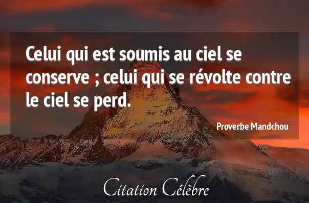 Celui qui est soumis au ciel se conserve ; celui qui se révolte contre le ciel se perd.