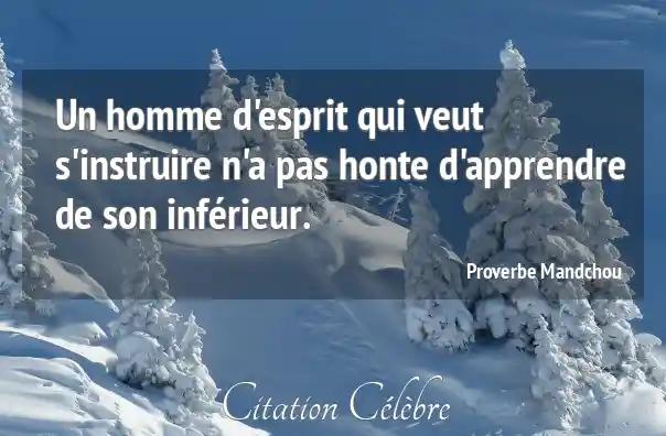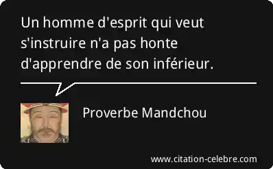 Un homme d'esprit qui veut s'instruire n'a pas honte d'apprendre de son inférieur.