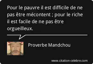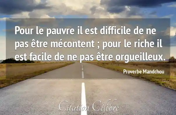 Pour le pauvre il est difficile de ne pas être mécontent ; pour le riche il est facile de ne pas être orgueilleux.