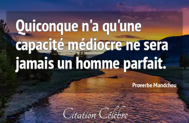 Quiconque n'a qu'une capacité médiocre ne sera jamais un homme parfait.