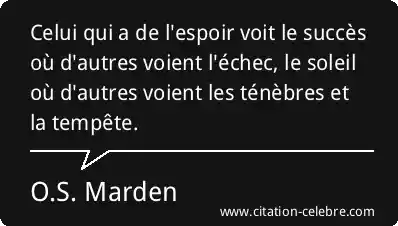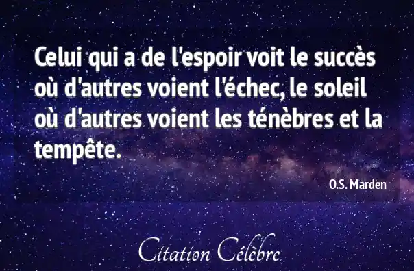 Celui qui a de l'espoir voit le succès où d'autres voient l'échec, le soleil où d'autres voient les ténèbres et la tempête.