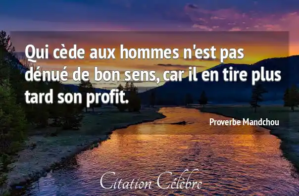 Qui cède aux hommes n'est pas dénué de bon sens, car il en tire plus tard son profit.
