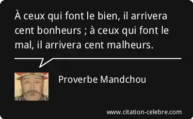 À ceux qui font le bien, il arrivera cent bonheurs ; à ceux qui font le mal, il arrivera cent malheurs.