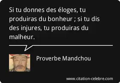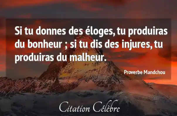 Si tu donnes des éloges, tu produiras du bonheur ; si tu dis des injures, tu produiras du malheur.